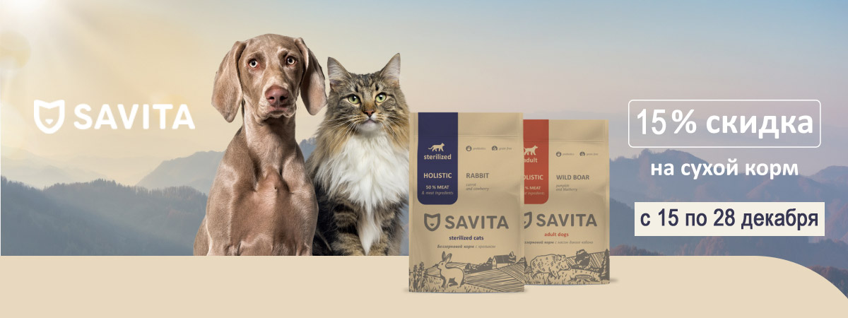 25 ноября 2025 будет действовать купон на скидку 15% на сухие корма SAVITA для собак и кошек, и консервы для кошек и собак - код купона SAVITA25NOV
