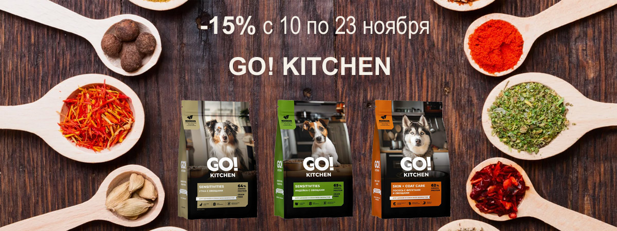 02 декабря 2025 будет действовать купон на скидку 15% на сухие корма GO'KITCHEN для собак и кошек, и консервы для кошек и собак - код купона GOKITCHEN02DEC